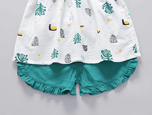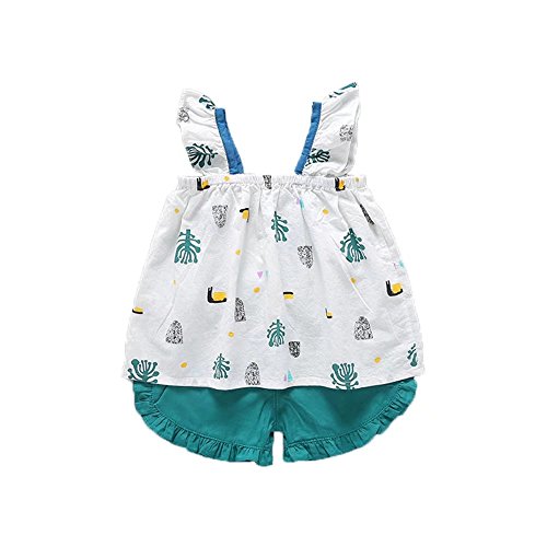 ベイビー服 女の子 Pojour ノースリーブトップス Tシャツ+パンツ ガールズかわいい2セット 子供ギフト 綿 通気 グリーン 70cm