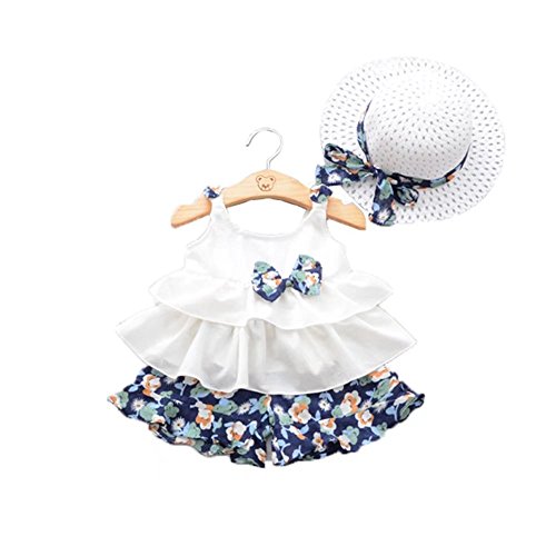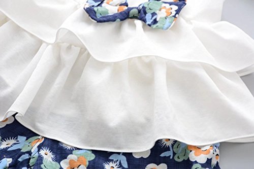ベイビー服 女の子 Pojour 子供ノースリーブ Tシャツ+パンツ ガールズかわいいフローラルパンツ 子供ギフト 綿 通気 70cm ブルー