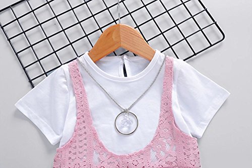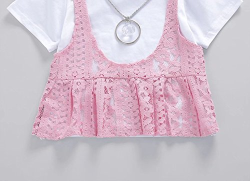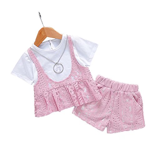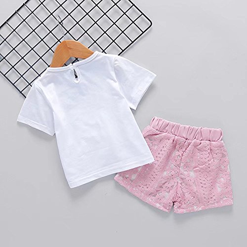 夏ベイビー服 半袖Tシャツ Pojour ガールズTシャツ+パンツ キッズ用かわいいファッション2セット 通気 子供ギフト 綿 70cm ピンク