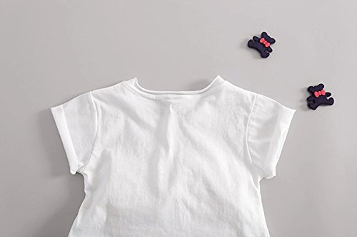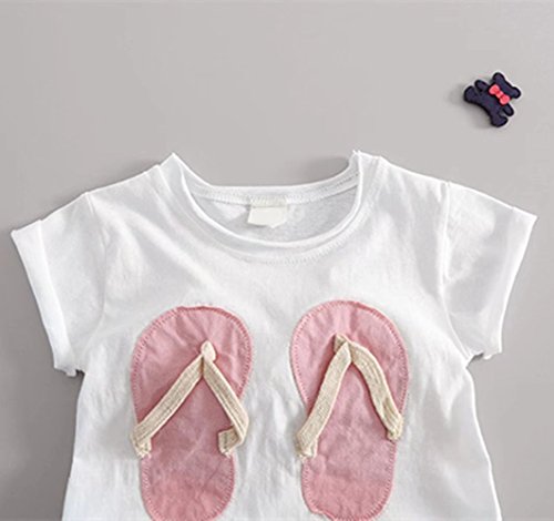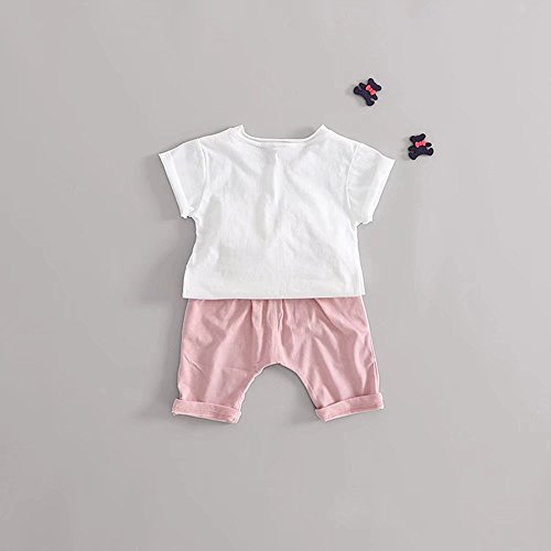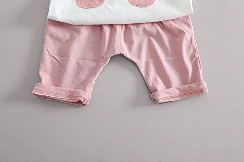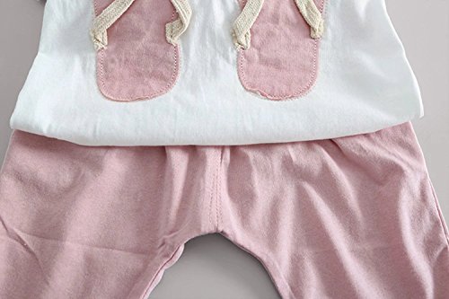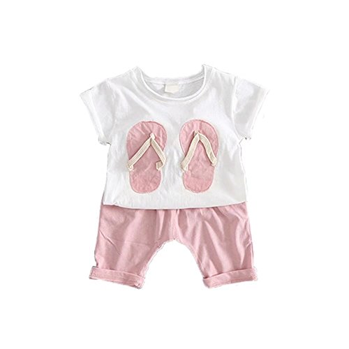 夏ベイビー服 子供Tシャツ+パンツ Pojour 女の子1-6歳 キッズ用かわいいスリッパ 2セット 子供ギフト 綿 通気 ピンク(90cm)