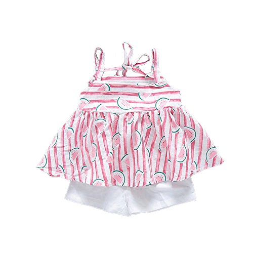 ベイビー服 女の子 Pojour ノースリーブトップス Tシャツ+パンツ ガールズキャミソール かわいい西瓜2セット 子供ギフト 綿 通気 70cm ピンク
