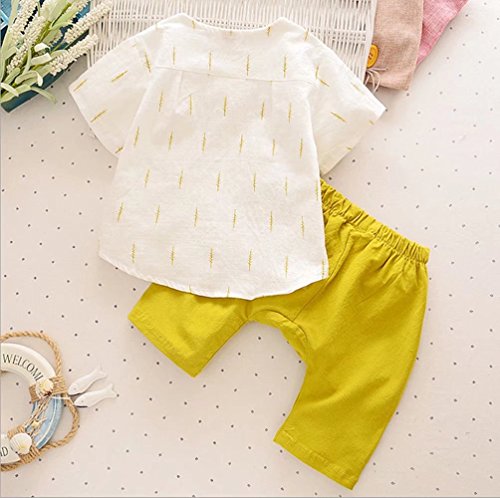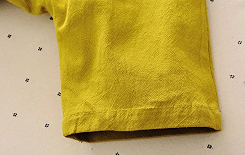 夏子供Tシャツ+パンツ ベイビー服 Pojour 1-6歳キッズ用かわいい服 男女兼用2セット 子供ギフト 綿麻 通気 黄色(110cm)