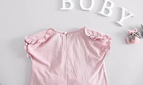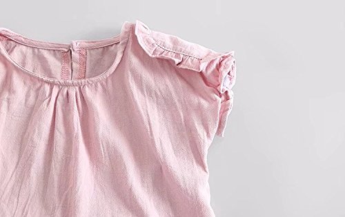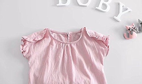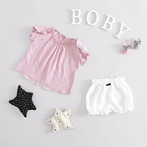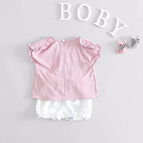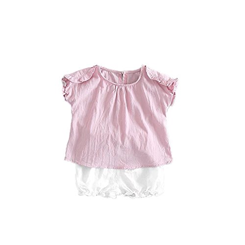 夏ベイビー服 女の子Tシャツ+パンツ Pojour 1-7歳子供かわいい無地2セット 綿 通気 ピンク(90cm)