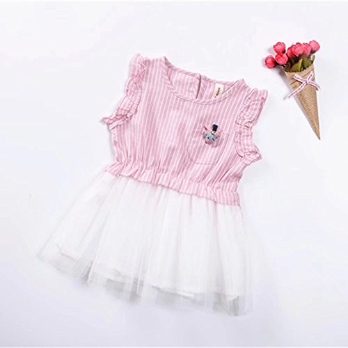 夏ベイビー服 110cm 女の子ワンピース 袖なし Pojour キッズ用かわいいドレス 子供ギフト 綿 通気