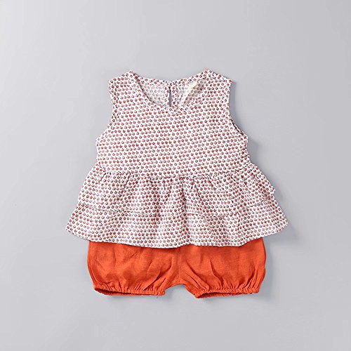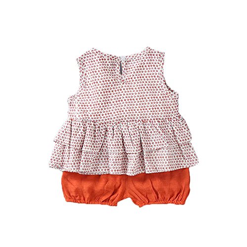 夏ベイビー服 半袖Tシャツ Pojour ガールズTシャツ+パンツ キッズ用かわいいファッションTシャツ 2セット 子供ギフト 綿 通気 70cm ピンク