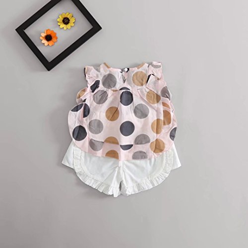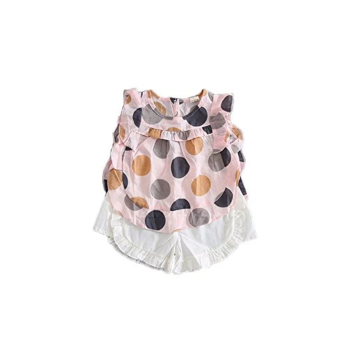 夏ベイビー服 子供Tシャツ+パンツ Pojour 女の子1-6歳 キッズ用かわいいキャミソール 2セット 子供ギフト 綿 通気 ピンク(70cm)