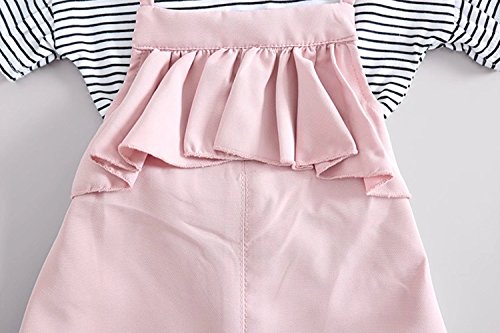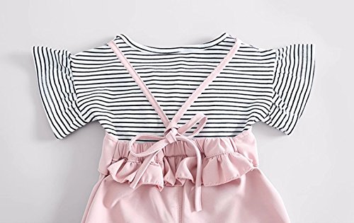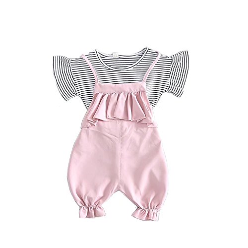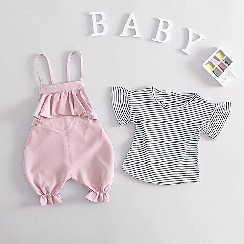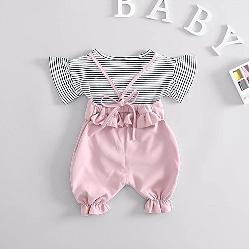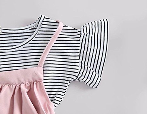 ベイビー服 Tシャツ 夏 女の子 Pojour 1-6歳子供かわいいストライプオーバーオール 2セット 綿 通気 ピンク(100cm)