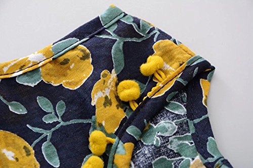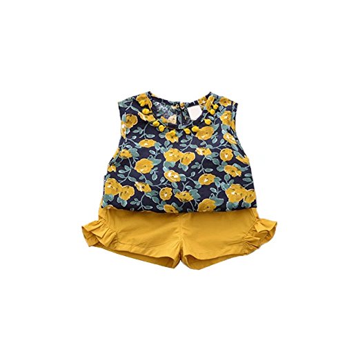 ベイビー服 Tシャツ+パンツ 夏 女の子 Pojour 1-6歳子供かわいい花2セット 綿 通気 黄色(90cm)