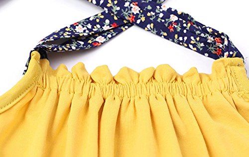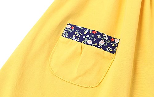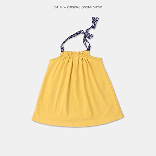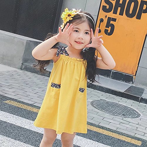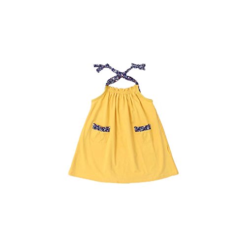 夏ベイビー服 女の子ワンピース 黄色 100cm Pojour 無地ガールズドレス キッズ用かわいいドレス 子供ギフト 綿 通気