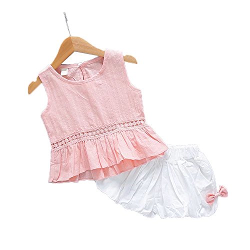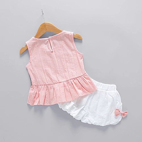 ベイビー服 女の子 Pojour Tシャツ+パンツ ノースリーブトップス ガールズかわいい2セット 子供ギフト 綿 通気 70cm ピンク