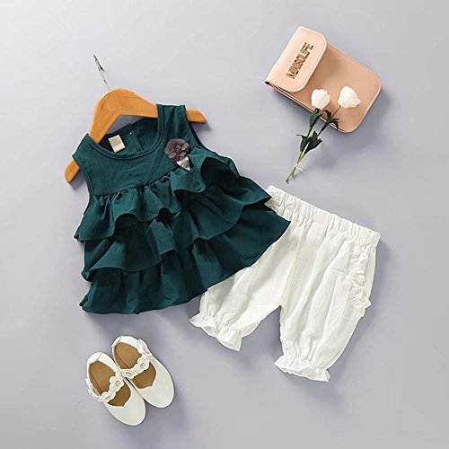 夏ベイビー服セット ノースリーブトップス Pojour ガールズTシャツ+パンツ かわいい2セット 子供ギフト 通気 綿 100cm グリーン
