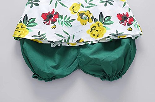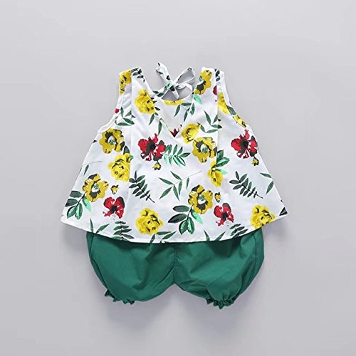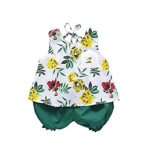 ベイビー服 女の子 Pojourノースリーブトップス Tシャツ+パンツ ガールズかわいい花 通気 子供ギフト 綿 70cm 緑