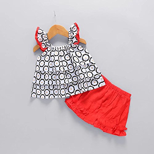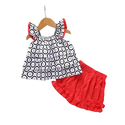 ベイビー服 女の子 Pojour ノースリーブトップス Tシャツ+パンツ ガールズキャミソール 可愛い2セット 子供ギフト 綿 通気 赤 80cm