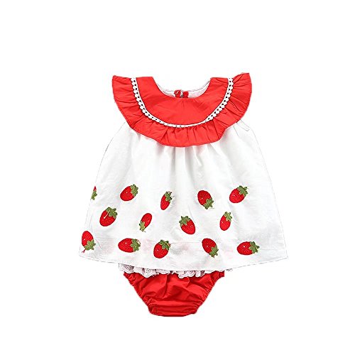 夏ベイビー服 女の子ワンピース Pojour ストロベリースカート+パンツ キッズ用かわいいファッションTシャツ 2セット 子供ギフト 綿 通気 90cm 赤