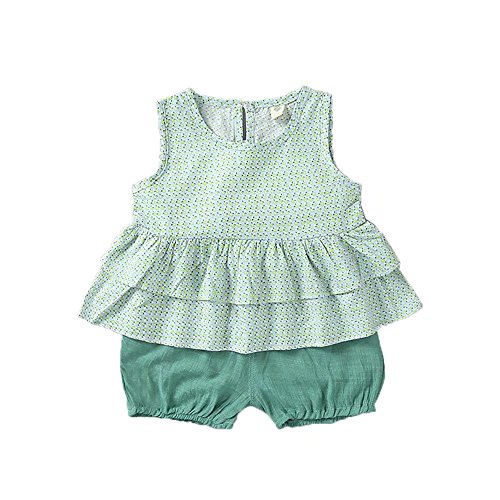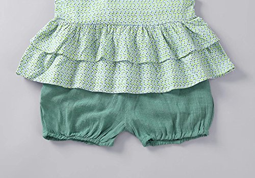 夏ベイビー服 半袖Tシャツ Pojour ガールズTシャツ+パンツ キッズ用かわいいファッションTシャツ 2セット 子供ギフト 綿 通気 90cm グリーン