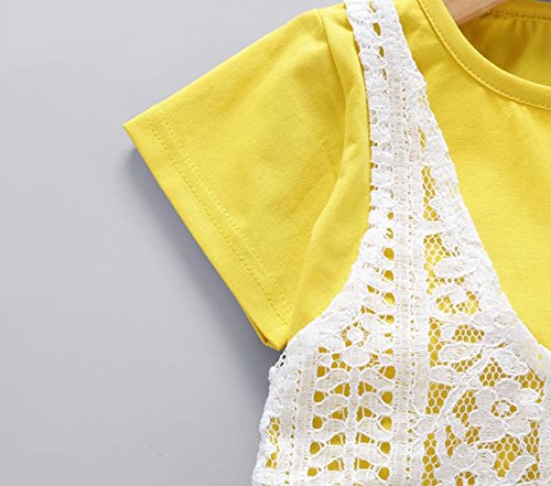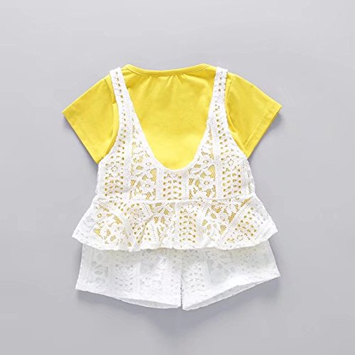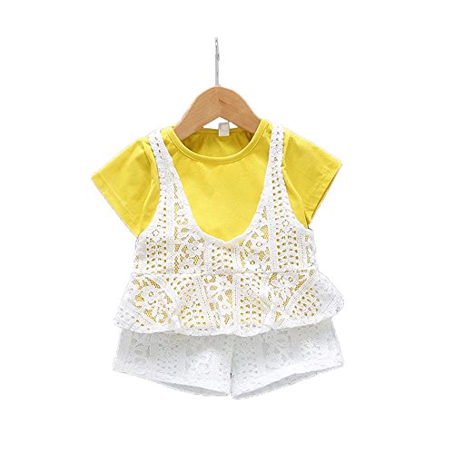 ベイビー服 女の子 Pojour Tシャツ+パンツ ガールズかわいい2セット 通気 子供ギフト 綿 70cm 黄色
