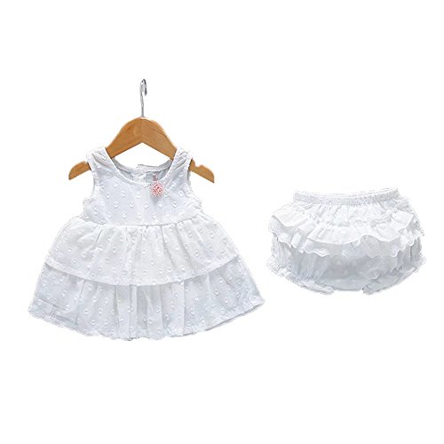 ベイビー服 女の子 Pojourノースリーブトップス Tシャツ+パンツ ガールズかわいいキャミソール 子供ギフト 通気 綿 80cm 白