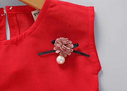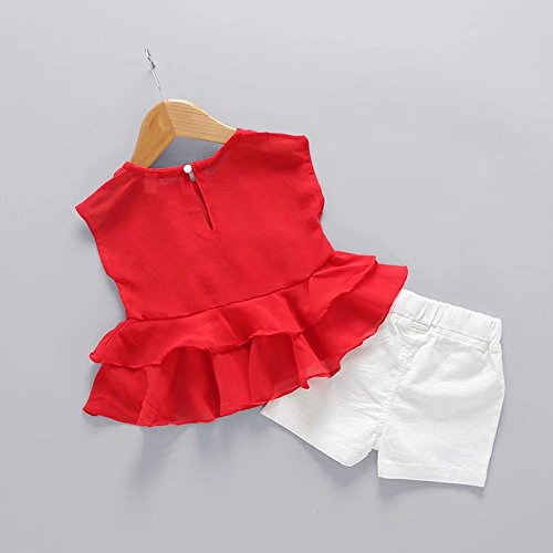 ベイビー服 女の子 Pojour Tシャツ+パンツ ガールズかわいい2セット 子供ギフト 綿 通気 80cm 赤