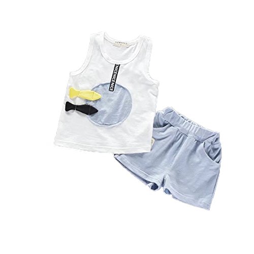 ベイビー服 男の子 Pojour ランニングシャツ 夏子供Tシャツ+パンツ ボーイズかわいい魚2セット 子供ギフト 綿 通気 白 100cm