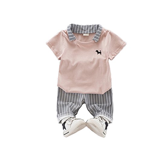 ベイビー服 男の子Tシャツ Pojour 夏子供Tシャツ+パンツ ボーイズ可愛い2セット 子供ギフト 綿 通気 ピンク 100cm