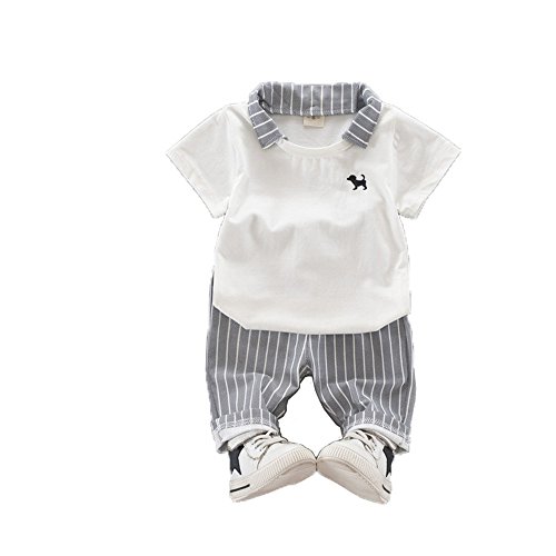 ベイビー服 男の子Tシャツ Pojour 夏子供Tシャツ+パンツ ボーイズ可愛い2セット 子供ギフト 綿 通気 白 100cm
