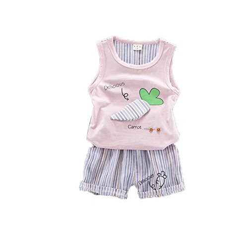 ベイビー服 男の子キャミソール Pojour ランニングシャツ 夏子供Tシャツ+パンツ ボーイズ2セット 子供ギフト 綿 通気 ピンク 100cm