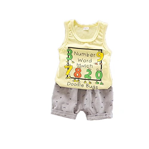 ベイビー服 男の子キャミソール Pojour ランニングシャツ 夏子供Tシャツ+パンツ ボーイズ 2セット 子供ギフト 綿 通気 黄色 80cm