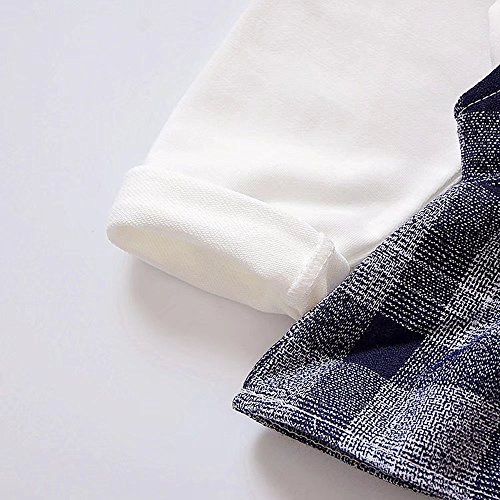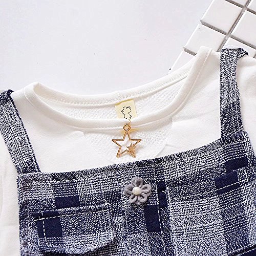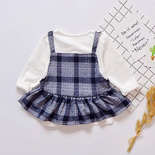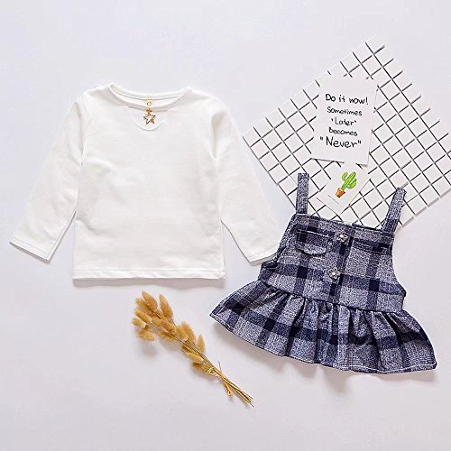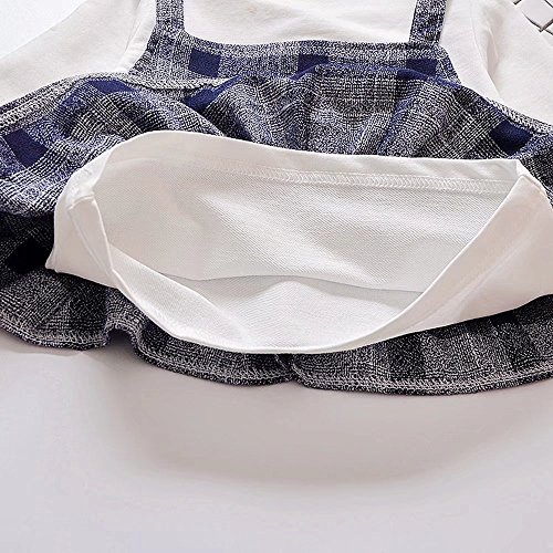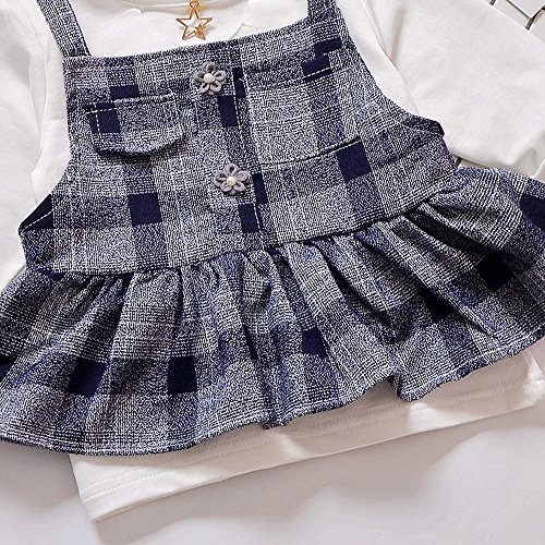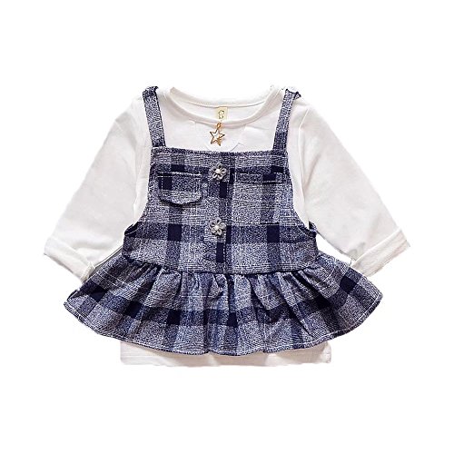 Pojour ベビー服 女の子グリッドワンピース 春秋 子供可愛いTシャツ+つりワンピース キッズドレス2セット 長袖ドレス 女児プレゼント ガールズスカート お出かけ 綿 通園 通学 出産祝い