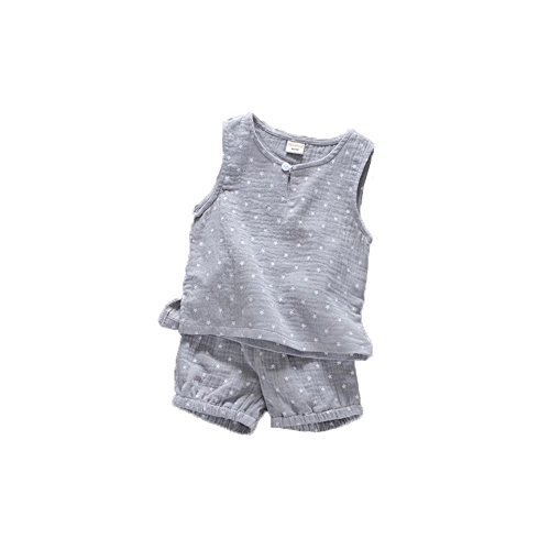女の子の服 夏 タンクトップ上下セット Pojour 1-6歳キッズ用 子供かわいいセット 通気 綿 グレー(90cm)