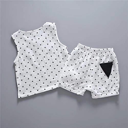 女の子の服 夏 タンクトップ上下セット Pojour 1-6歳キッズ用 子供かわいいセット 通気 綿 白(100cm)