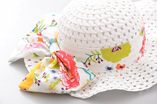 ベイビー服 女の子 Pojour 夏子供ノースリーブTシャツ+パンツ 帽子付き ガールズかわいいフローラル 子供ギフト 綿 通気 白 100cm