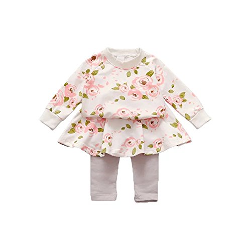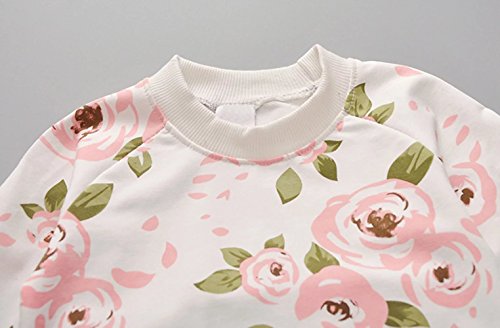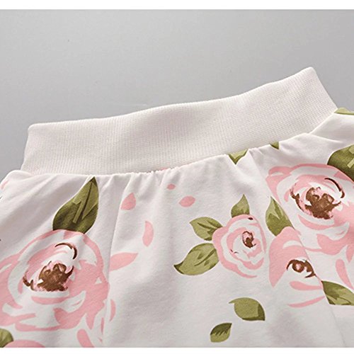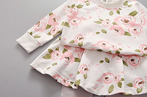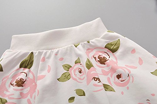 Pojour 春 0-2歳 2-7歳女の子可愛いドレス キッズスカート 2セット 漫画花 通気 綿 ピンク(90cm)