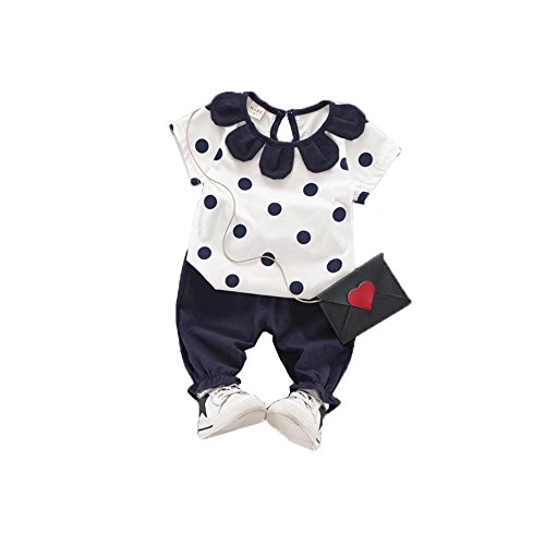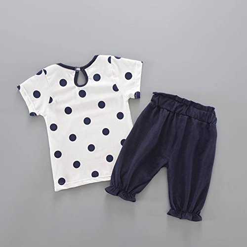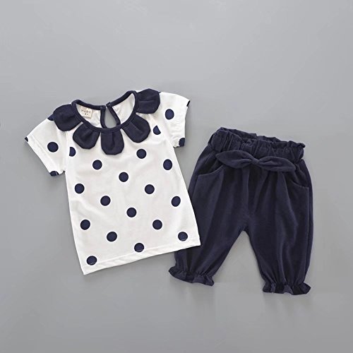 夏Tシャツ+パンツ 上下セット 女の子の服 Pojour 1-6歳キッズ用 子供かわいい服 綿 通気 ブルー(70cm)