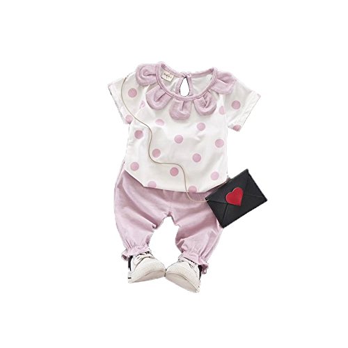 夏Tシャツ+パンツ 上下セット 女の子の服 Pojour 1-6歳キッズ用 子供かわいい服 綿 通気 ピンク(100cm)