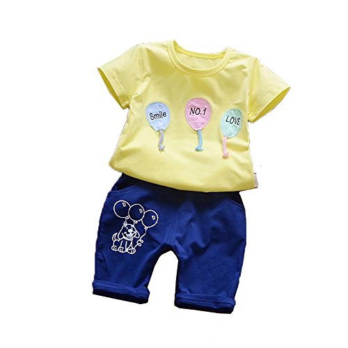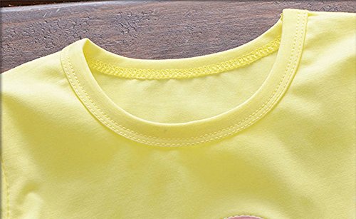 夏Tシャツ+パンツ 女の子の服 男女兼用 2セット Pojour 1-6歳キッズ用 子供かわいいバルーンTシャツ 綿 通気 黄色(100cm)
