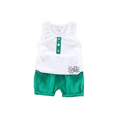 ベイビー服 男の子キャミソール Pojour ランニングシャツ 夏子供Tシャツ+パンツ ボーイズかわいいボタン2セット 子供ギフト 綿 通気 グリーン 110cm
