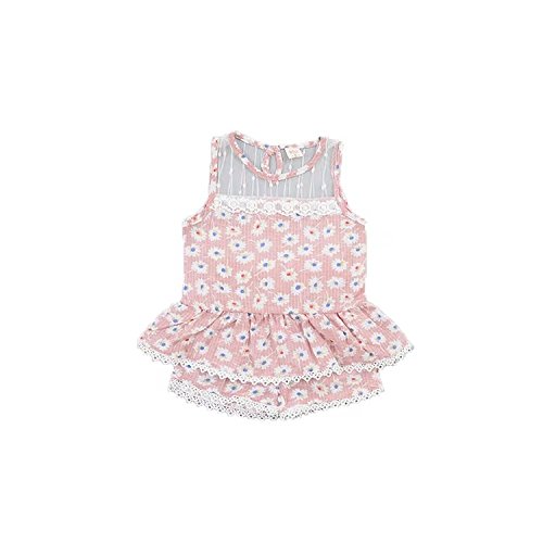 夏ベイビー服 女の子 トップスワンピース 袖なし Pojour キッズ用かわいい上下セット ギフト 綿 通気 ピンク 70cm