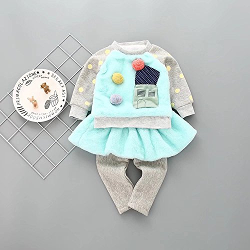 Pojour ベビー服 子供服 女の子上下セット 冬 防寒 かわいいブラウス おしゃれスカッツ 暖かい 厚手 綿 ベビールームウェア 普段着 カジュアル 旅行 記念日 プレゼント 青