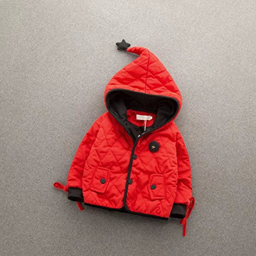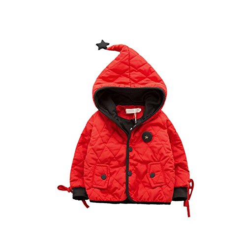 Pojour ベビー服 子供服 男の子 女の子 冬秋 防寒 厚いコート 可愛い星コート 厚手 長袖 暖かいジャケット ベビールームウェア 普段着 カジュアル 旅行 記念日 プレゼント 赤