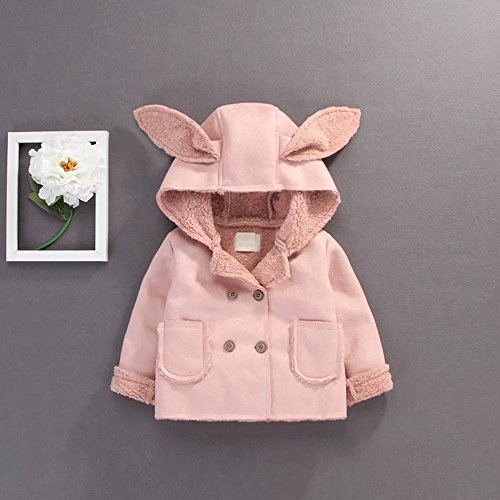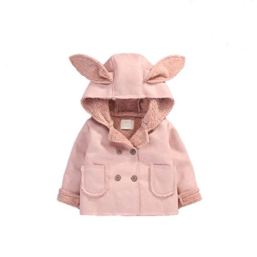 Pojour ベビー服 子供服 女の子 秋冬 防寒 おしゃれ かわいい耳コート ソフトジャケット 裏毛 長袖 暖かいジャケット ベビールームウェア 普段着 カジュアル 旅行 記念日 プレゼント ピンク