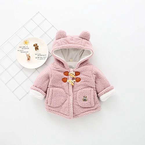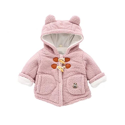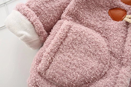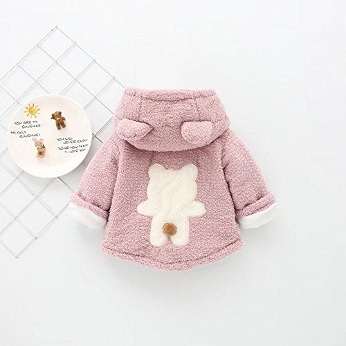 Pojour ベビー服 子供服 女の子コート 冬 防寒 おしゃれフード付きコート かわいいクマジャケット 厚手 長袖 暖かい ベビールームウェア 普段着 カジュアル 旅行 記念日 プレゼント ピンク