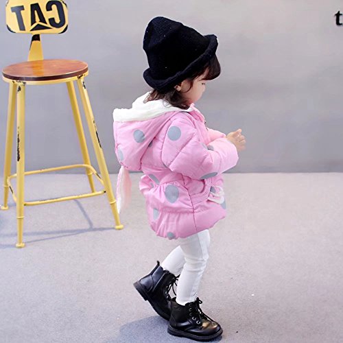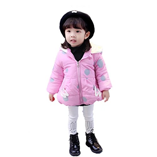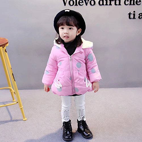 Pojour ベビー服 子供服 女の子コート 冬 防寒 おしゃれフード付きコート かわいいドットグローブジャケット 厚手 長袖 暖かい ベビールームウェア 普段着 カジュアル 旅行 記念日 プレゼント ピンク