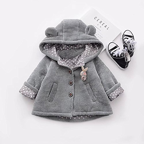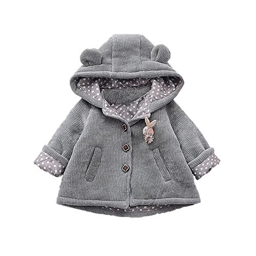 Pojour ベビー服 子供服 女の子コート 冬 防寒 おしゃれフード付きコート かわいいドット花バックルジャケット 厚手 長袖 暖かい ベビールームウェア 普段着 カジュアル 旅行 記念日 プレゼント グレー