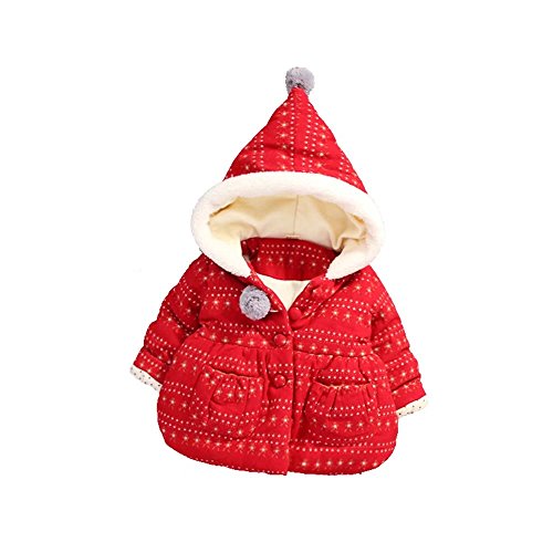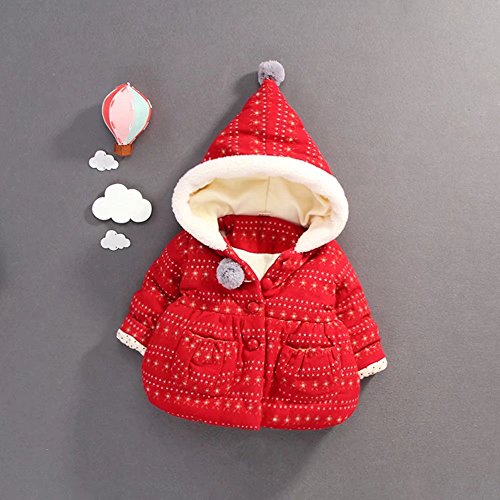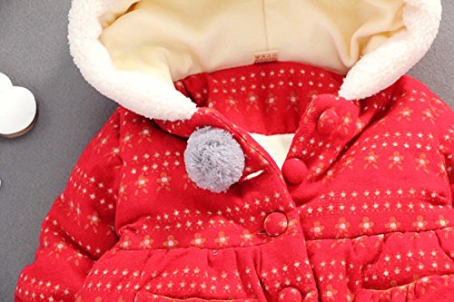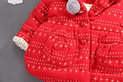 Pojour ベビー服 女の子コート 子供服 冬 防寒 かわいいドットジャケット おしゃれフード付きコート 暖かい 厚手 綿 ベビールームウェア 普段着 カジュアル 旅行 記念日 プレゼント 赤