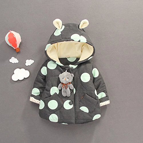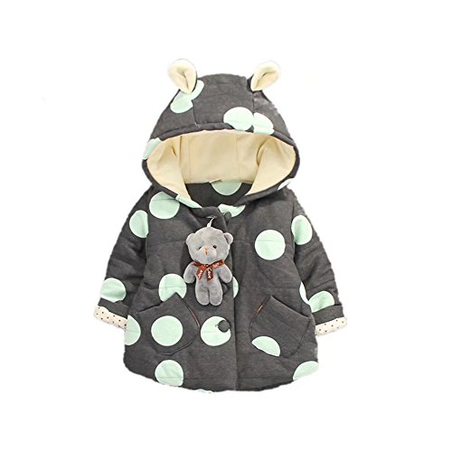 Pojour ベビー服 子供服 女の子コート 冬 防寒 かわいいドットジャケット おしゃれフード付きコート 裏毛 厚手 暖かい 綿 ベビールームウェア 普段着 カジュアル 旅行 記念日 プレゼント