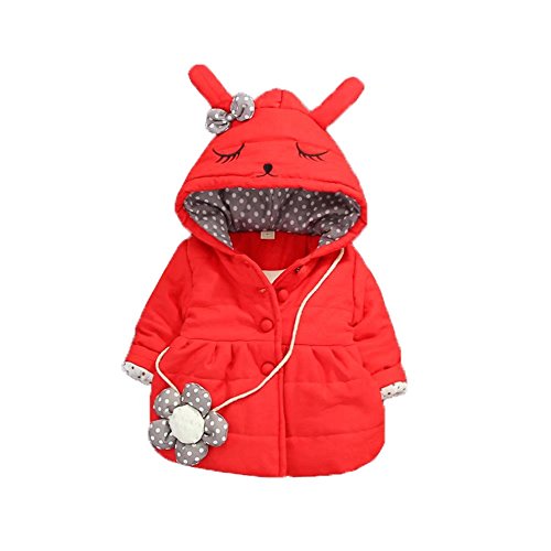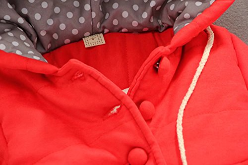 Pojour ベビー服 子供服 女の子コート 冬 防寒 かわいいまつげジャケット おしゃれフード付きコート 裏毛 厚手 暖かい 綿 ベビールームウェア 普段着 カジュアル 旅行 記念日 プレゼント 赤