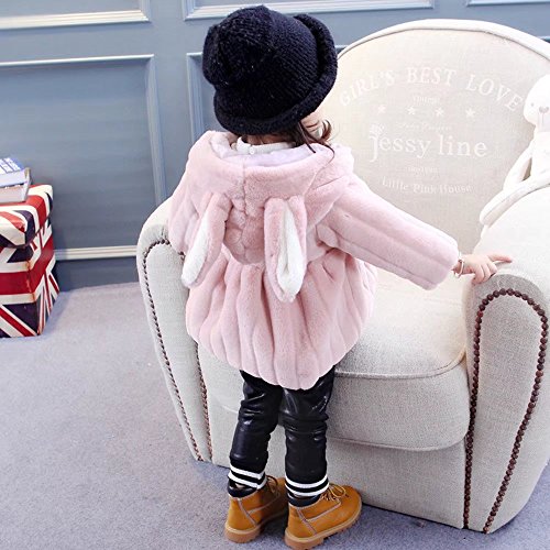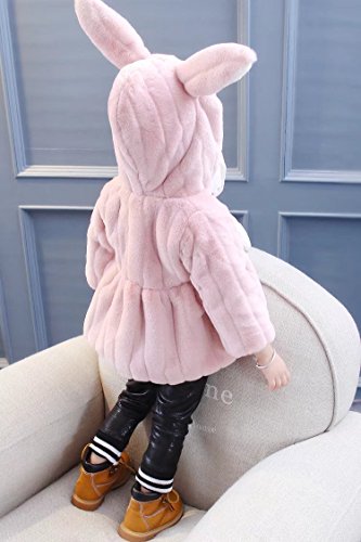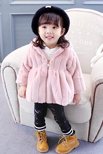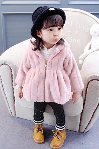 Pojour ベビー服 子供服 女の子コート 冬 防寒 裏毛 かわいいフワフワジャケット おしゃれフード付きコート 厚手 暖かい 綿 ベビールームウェア 普段着 カジュアル 旅行 記念日 プレゼント ピンク