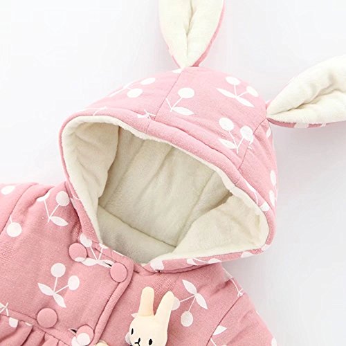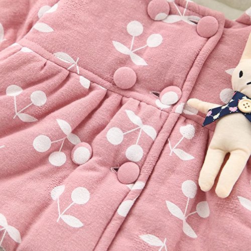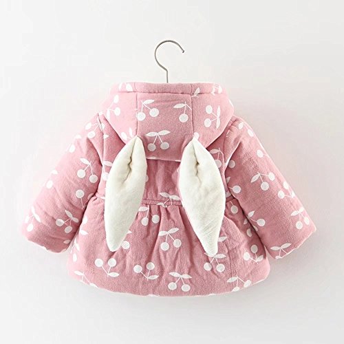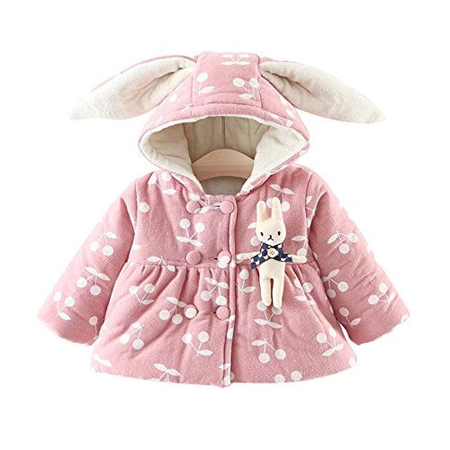 Pojour ベビー服 子供服 女の子コート 冬 防寒 裏毛 かわいいチェリー印刷ジャケット おしゃれフード付きコート 厚手 暖かい 綿 ベビールームウェア 普段着 カジュアル 旅行 記念日 プレゼント ピンク