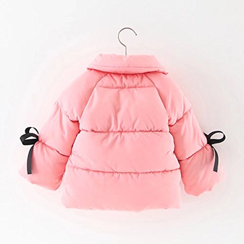 Pojour ベビー服 女の子コート 可愛いリボン付き袖 子供服 防寒 冬 レジャーダウンコットンコート おしゃれ 暖かい 厚手 綿 ベビールームウェア 普段着 カジュアル オシャレ 保温 防寒対策