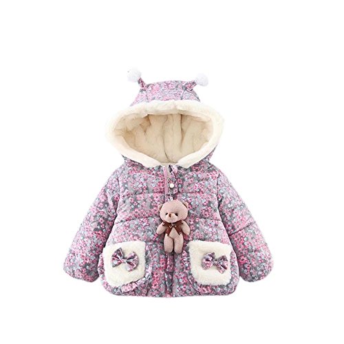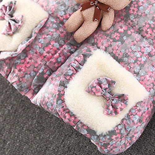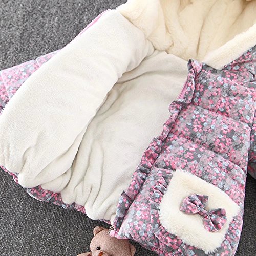 Pojour ベビー服 女の子コート 可愛い小花柄コート 子供服 防寒コットン服 冬 レジャ中綿入りコート おしゃれ 暖かい 厚手 ベビールームウェア 普段着 カジュアル 保温 防寒対策